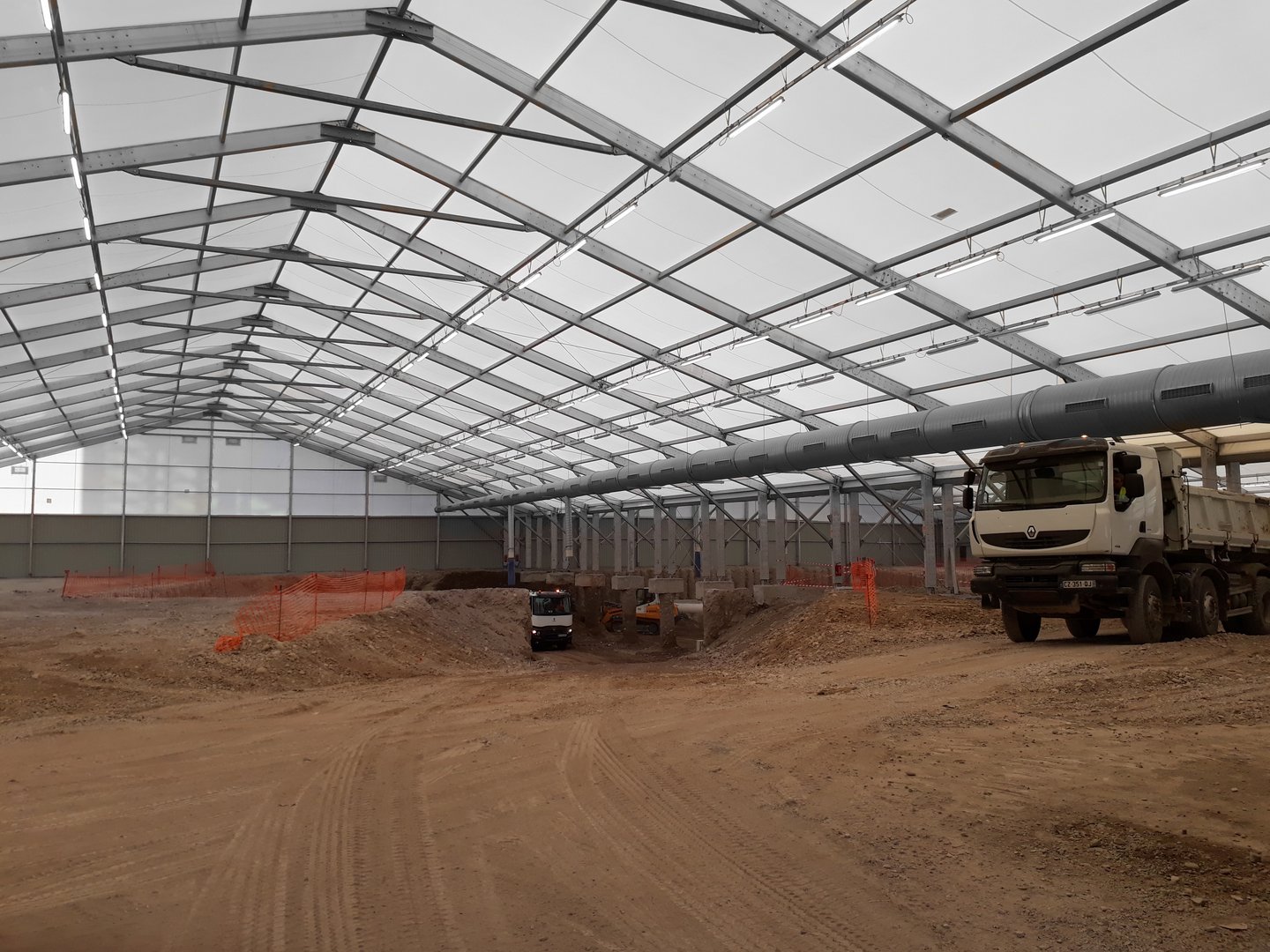 Les sols pollués sont extraits, et seront traités hors site. La couverture par tente permet de contenir le dégagement de polluants lié à la mise à l’air libre des terres lors des actions d’extraction et de manipulation des sols (chargement en camion pour évacuation par exemple).