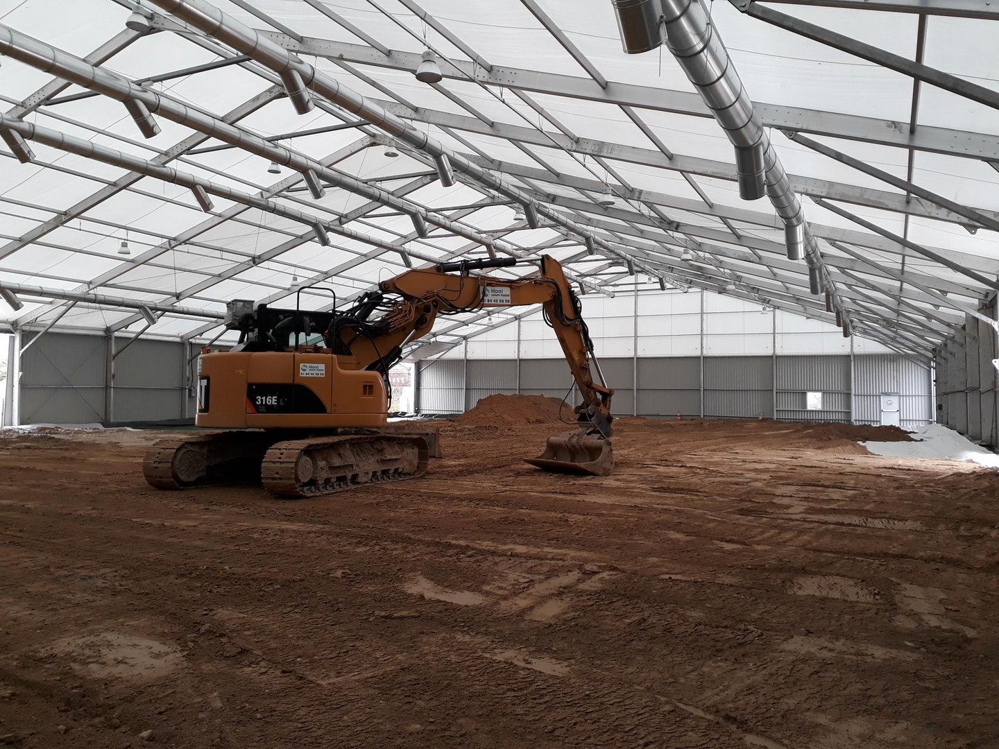 • Tente couvrant une zone d’excavation avec prétraitement dessous